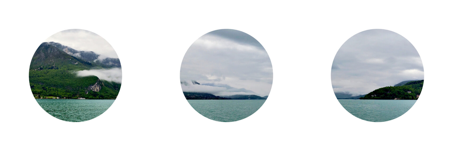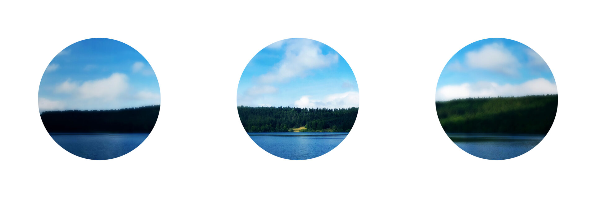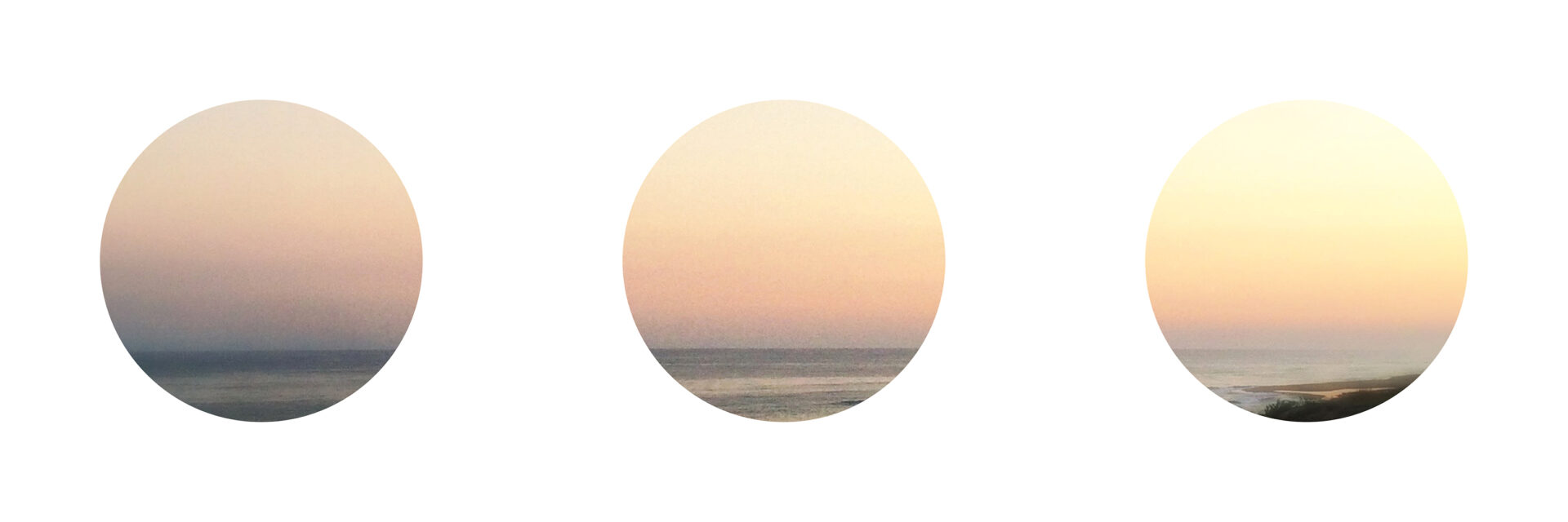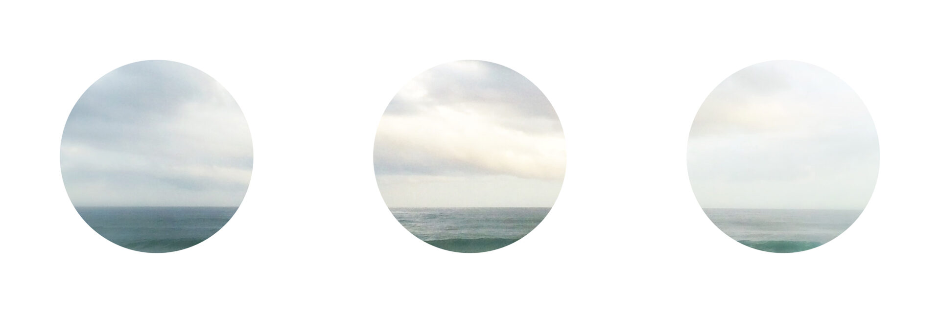 Sur mon mur Instagram, ce sont les éléments de sens attribués aux points de suspension (ellipsis en anglais) dans le langage qui m’intéressent. Dans l’écriture, ce signe renvoie à un flottement, à un sous-entendu ou à quelque chose passé sous silence. Il donne un effet de raccourci et sollicite l’imagination pour représenter le silence. En le transformant en cadre – tel les hublots d’un bateau -, par l’inclusion d’un paysage photographique réparti sur les trois cercles, j’essaye de (re)transcrire ces caractéristiques sémantiques en image et de les relier à un non-lieu atmosphérique hors du temps, à un silence visuel où un regard(eur) solitaire a retenu sa respiration l’espace d’un acte photographique.